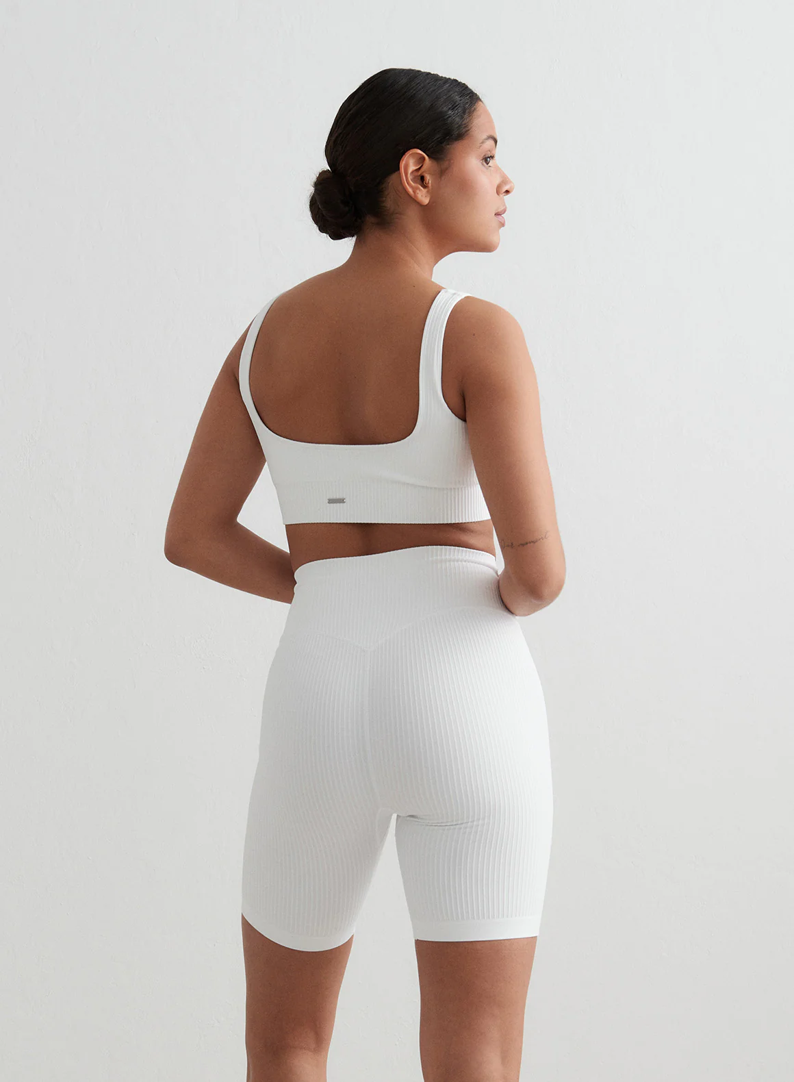 White Ribbed Seamless Biker Shorts